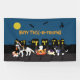 A group of cats and dogs go trick or treating on Halloween Night! The pets in this design include a Akita Inu puppy dressed as a cowboy, a Norwegian Forest Cat with a princess crown, a Siberian Husky pulling a wagon with a pumpkin in it, a Persian cat dressed as an angel, a papillon, a basset hound, a basenji, a Pomeranian dressed as a witch, and a border collie dressed as a police dog. Meanwhile, bats and witches are flying above the neighbourhood under a full moon! This design can be customised or personalised by adding your own text or images!