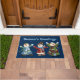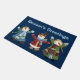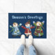 Let these three happy snowmen greet your guests this holiday season, with this charming Christmas theme doormat. The mat has three colourfully dressed smiling snowmen, against a dark blue background. Light blue text, at the top of the door mat, reads Season's Greetings, and can be changed to read what you want.