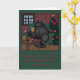 Beautifully hand drawn and coloured Thanksgiving "Happy Turkey Day and all that other stuffing!" card featuring a black Newfoundland puppy dog, after a big Thanksgiving turkey feast. Taking a big turkey nap ready for dessert!