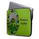 A sleeve for your laptop computer with a smiling cartoon box turtle. He's multiple shades of green and he's walking on a lawn and there's a blue and orange sky behind him.