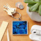 Happy Valentine Love Romantic Blue Glitter Roses Key Chain