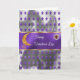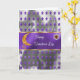 An elegant purple and silver foil card featuring an orange jewel Moon with a gold pearl carnelian charm, gold carnelian hearts necklaces and shiny purple stars.