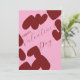Graphic and sweet: oversized burgundy hearts dance across a rosy-pink background, with elegant hand-scripted “Happy Valentine’s Day.” The bold, modern look works for partners, spouses, and friends alike.