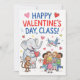 Valentine’s Day greeting card designed for classroom use. Features friendly illustrated animals and a diverse group of children exchanging Valentine cards, with the message “Happy Valentine’s Day, Class!” Ideal for teachers, students, and school Valentine celebrations. Suitable for elementary classrooms, school parties, and inclusive class gifting.