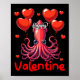 Happy Valentine Squid Holding Heart Bylloons Lover Poster