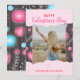 Spread love this Valentine’s Day with a with this romantic and girly card easily personalizable with your name, photo and message to make it truly unique! Featuring a whimsical heart and flower-inspired design in vibrant pink and blue hues on a chic dark grey background. This girly and playful pattern includes heart shapes, delicate floral elements, leafy accents, and charming dots, making it the perfect Valentine’s card for your friends, family and loved one.