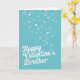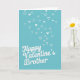 This greeting card features a cool aqua background with a light texture that feels calm and modern. In the lower two-thirds, the message “Happy Valentine’s Brother” appears in smooth, flowing white lettering that stands out clearly against the blue-green color. Above the words, a cluster of white hearts floats upward, mixing solid hearts with simple outlined ones. The hearts look like they’re drifting like confetti, which adds a gentle sense of motion. The overall look is sweet and caring, with a relaxed feeling that fits a close bond between siblings. It’s a meaningful card to give because it says “I care about you” in a straightforward way, without trying too hard 🥰. The simple colors and floating hearts keep the focus on love and appreciation ❤️.