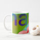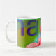 Valentine's day mug: Two red hearts with 3D digital effect (with Photoshop) on colourful background with "Happy Valentine's day". Matching postage and other products.