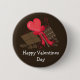 Decadent dark chocolate treats. A pink heart shaped sucker with a pink ribbon accents it. A fun Valentine button to wear.