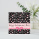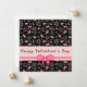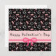 Valentine's Day greeting card with pink and white hearts and lips on a black background.
