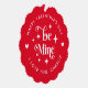 Ornament card featuring the text "be mine" in an elegant retro font surrounded by retro stars. Customisable name and text "Happy Valentine's Day". Red or custom colour background. Add a custom photo on the back.