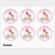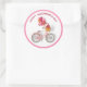 Pretty Valentine's Day classic round stickers - two sizes available - these feature a bicycle with a basket full of Valentine's hearts and a bouquet of Valentine's balloons.