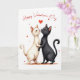 Black and white cat are slow dancing with each other with hearts around them isolated on white.