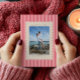 Custom Valentine card with photo, striped background, and clean, modern design.