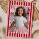 Custom Valentine card with scalloped photo, striped background, and clean, modern design. This design is perfect for both child and family photos.