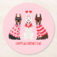 Happy Valentines Day Dobermann Dogs Round Paper Coaster