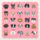 Illustration of many different breeds of dogs. They are dressed in Valentine's Day attire.