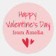 Happy Valentine's Day from custom name pink red Classic Round Sticker