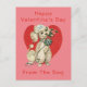 This design features a vintage drawing of a white poodle with a flower in her mouth sitting front of a large red heart with the text "Happy Valentine's Day From The Dog." With pets, Valentine's Day is every day!