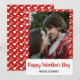 This modern and stylish photo holiday card is a great way to spread love and cheer to your friends and family this Valentine's Day. It features "Happy Valentine's Day" in deep red font, a single photo for you to replace with your own, and a customisable holiday message. The back is red with a white heart pattern. All colours of the text and graphics can be customised to your preference. Make your loved ones smile this holiday season.