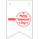 This bunting banner features the words “Happy Valentine's Day” in a unique print font with red letters within a circular styled design plus the word Love on a banner to the left in this Valentines Day theme. All banners have single sided printing outdoor safe and made with thick plastic rope has (16) 5.5" x 8" swallowtail flags on a 6' long string.
