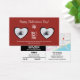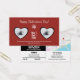 The Happy Valentine's Day One Rose Gift Voucher Card template in landscape format is part of the Black & White Business Cards and Marketing Items Collection. Titled Happy Valentine's Day in script, the card has placeholders on the front for two heart-shaped custom images with the gift described: 'Buy 1', 'Get 1 Free'. In this case, the photos are each a black and white single rose photo masked as a heart shape. Below the title is a placeholder for the company logo and along the bottom border are the terms and conditions for this promotion. On the back is space for a customisable QR code, the CTA (call-to-action) 'scan and what to find when scanning. This is followed by the invitation to follow the Valentine Hashtag on your social media presences and a tracking code. The right half features a map excerpt and the physical address in text. Fill in your text, add your gift and logo as well as your location as an image and make the card work for your small business.