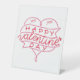 This pedestal sign showcase the words “Happy Valentine's Day” in a unique print font with red letters within a pink heart styled design plus the letter XOXO in this Valentines Day theme. Printed with high-quality, full-colour digital print available in 4 sizes made of 1/16" white plastic polystyrene 10" x 12" display with 3" pedestal base.