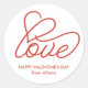 This cute Valentine's Day sticker features "love" in elegant script with a heart in the loop of the "L" alongside your personalised message.