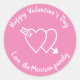 Happy Valentine's Day pink and white cute hearts custom script text modern elegant Classic Round Stickers