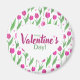 Happy Valentine's day magnet decorated with pink tulip pattern on white background.