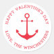 Happy Valentine's Day red nautical anchor custom Classic Round Sticker