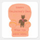 These cute stickers feature my painting of a teddy bear sitting in a big orange chair. The bear is wearing a pink neck scarf and has a red heart on it's chest. The text on the upper part of the chair says, Happy Valentine's Day. The text on the bottom of the chair says, Wish you were here. The text is written in a red orange font, and both can be customised on the template forms. Thank you for shopping CherylsArt on Zazzle.