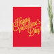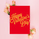Valentine's Day greeting card features a "Happy Valentine's Day" message in elegant gold foil script on a red background.
