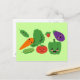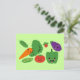 Featuring vector drawn cheerful vegetables, including a carrot, peas, radish, pepper, eggplant, and tomato.
