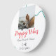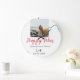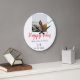 Happy Vibes holiday couple name date wedding red Large Clock