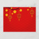 Stylised illustration with yellow "apricot" blossoms, Asian lanterns with red background. Design on horizontal holidays postcard with custom year 2020 and "HAPPY VIETNAMESE NEW YEAR" in yellow + a small rat in the corner. You can easily change text (font colour, size and position) + delete the rat illustration if you want by clicking the customise button + same design in the back.