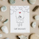 Middle aged Wife and Husband are sitting on the swing and watching beautiful sunset. The sun takes the shape of a shining heart for this happy moment of their Wedding Anniversary. Back of the card features just shining red heart. Design of the card is made in a very simple pen and ink cartoony technique with the only red spot - Heart. Great Card to send to your folks or friends on the occasion of their happy marriage!
