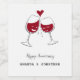 Cute and funny Happy Wedding Anniversary Wine Label! It features a cartoon illustration of two clinking red wine glasses. The glasses have two smiling faces: his and her. The splashing drop of wine takes the shape of a heart. Illustration is made in a very simple pen and ink technique. Great wine label for the occasion of their wedding anniversary. You can easily personalize the text (greeting and names) using Zazzle online tools. Don't hesitate to contact me via Zazzle if you need help to personalize this product.