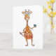This is an original mixed media painting of a happy, whimsical giraffe drinking coffee.