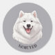 Happy White Samoyed Dog Classic Round Sticker