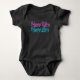 I ordered an all-cotton T-shirt with the same logo for myself and one for the newest addition to my extended family. The T-shirt arrived first, but I left on vacation before the baby's all-cotton onesie was delivered to me. After I returned home, I feared that the newborn for whom it was intended may have already outgrown it; but, fortunately, that was not the case as you can see from the photo. The printing and colors turned out just as I envisioned them: perfection.