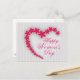 Gentle red colour flowers that make heart,with message "happy women's day' inside of it.