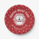 Infuse your festive feast with charm using our customisable paper plates. Adorned with a cute hand-drawn poodle in a vintage frame against a vibrant red background, sprinkled with paw print snow, and ready for your personalised Zazzle touch. Ideal for dog enthusiasts and those seeking a touch of playfulness in their Christmas or New Year's festivities 🐾🎄🍽️.