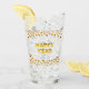 Elegant glass with Happy Year text and golden confetti. Text can be customised. Happy New Year 2019, 2020 and all the following years!