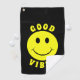 Good Vibes - Cool yellow happy smiling face. Drive the message down with a bold yellow on black design. Good vibes is a slang phrase for the positive feelings given off by a person, place, or situation. It evoked positive, safe, happy sensations. Sending good thoughts / positive energy, and it can also mean 'Right On!' and 'Go for it!'. An expression for many occasions.