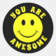 Happy Yellow Face You Are Awesome Classic Round Sticker
