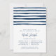 Elegant coastal first holy communion invitations feature a top border of hand drawn stripes in nautical cobalt blue. Personalise with your first communion details beneath in a chic mix of block, serif and handwritten typefaces. Includes space for both the religious ceremony and party or celebration to follow. Invitations reverse to a pattern of tiny white anchors on navy blue.