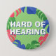 Another tropical hard-of-hearing badge by JessicaAmber - ask about custom orders! This button features the slogan 'Hard of Hearing' in a bold font, surrounded by a border of green, pink and blue monstera leaves. You can edit the text as needed. A great gift for your mother who wears hearing aids. ⭐ Created 3 April 2023. ⭐ For more cool pins, visit my store: Zazzle.com/store/DriftwoodAndDreams ⭐ For custom orders, email me at jessicaamberartist+zazzle@gmail.com
