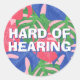 Hard of Hearing Pink Blue Green Tropical Leaves Classic Round Sticker