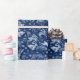 Wrapping paper featuring cute winter pattern in blue shades, white rabbits jumping on snow field. Faux textured seamless design elaborated from handmade wool painting. Lovely gift for winter holidays, fits great for nursery or children room decor.